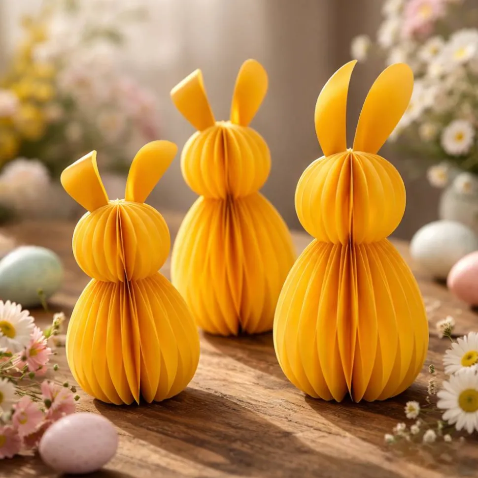 Hole dir einen einzigartigen Osterhase in Wabenoptik aus Karton, handmade und mit viel Liebe gefertigt! Dieser dekorative Hase ist stehend, etwa 16 cm groß inklusive Ohren und sorgt für eine stilvolle Osterdeko in deinem Zuhause.