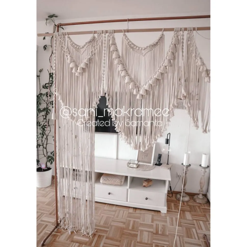 Dekorationsartikel wie Vasen, Pampasgras, Stühle, Traumfänger und das Traubogen-Gestell dienen nur zu Dekorationszwecken und sind im Preis nicht inbegriffen. Verkauft wird ausschließlich das Makramee am Holzrundstab.