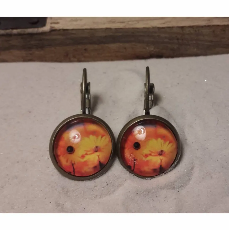 12mm großer Glasstein in bronzefarbenen Kupfer Brisuren
