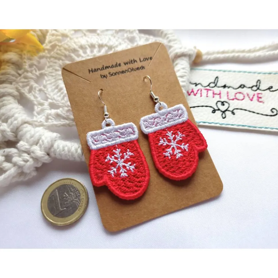 Ich habe sie mit Stickgarn in der Lace Technik aus Polyester Garn gestickt. Durch das später ausgewaschene Spezial Vlies verfügen sie über eine leichte Festigkeit.