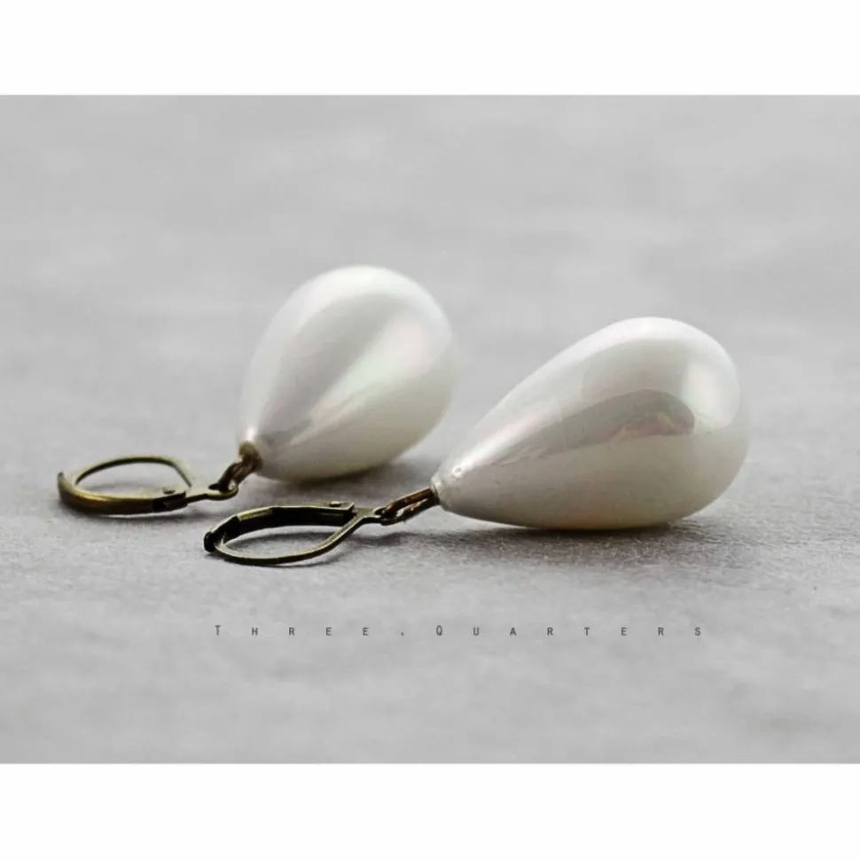 Große Ohrringe mit Tropfen Perlen in creme/weiß.