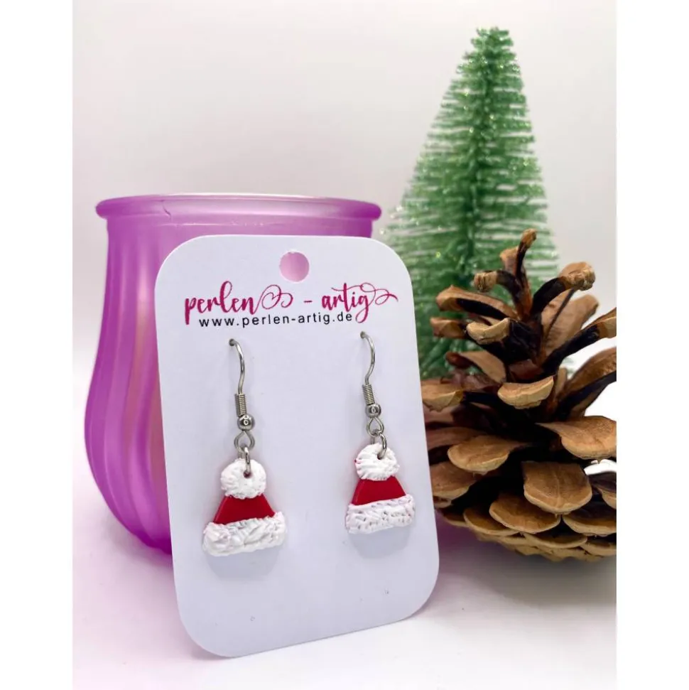 Diese liebevoll handgefertigten Ohrringe sind das perfekte Accessoire für die festliche Jahreszeit. Jedes Paar zeigt eine kleine, detailgetreue Weihnachtsmannmütze in leuchtendem Rot, verziert mit einem weißen Bommel und einem weißen, geriffelten Rand.
