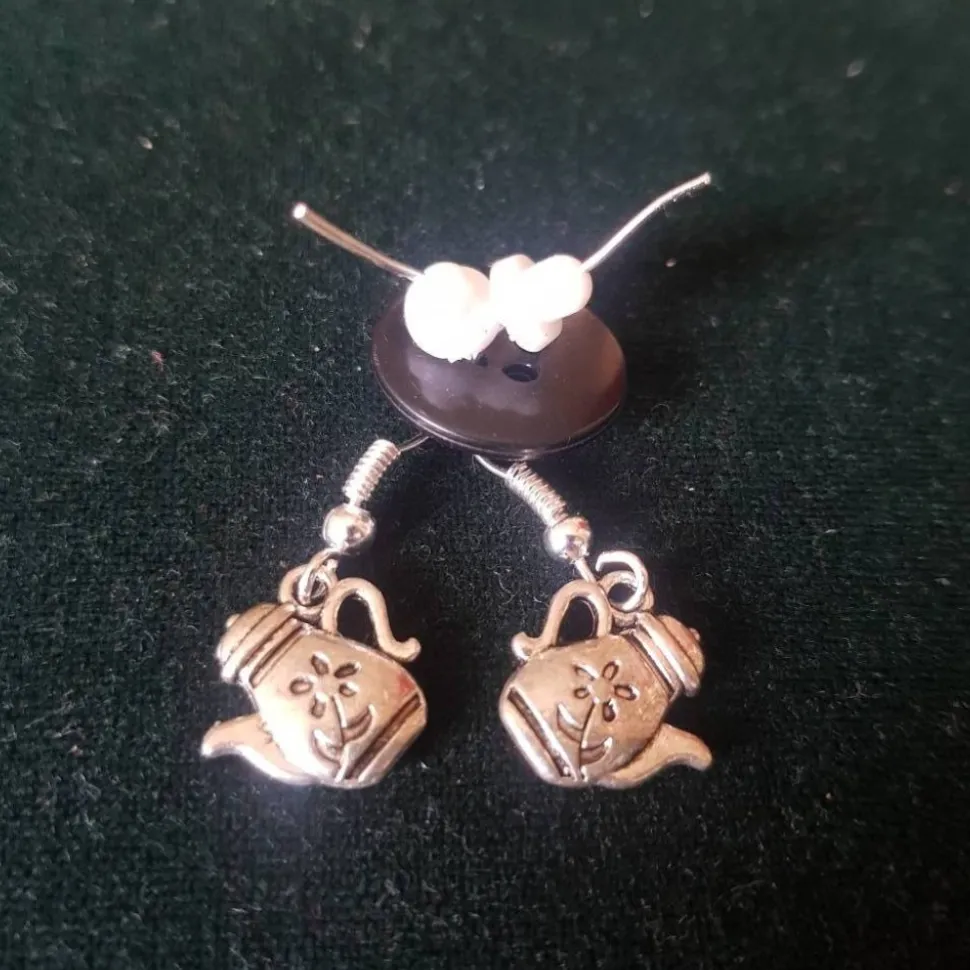 hier werden diese tollen verspielten silberfarbene Hängerchen mit Teekanne Kaffekanne angeboten,