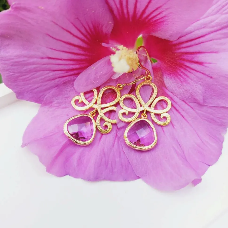 An den Ohrhaken – wahlweise aus Edelstahl oder Messing – baumeln wunderschöne Ornamente mit Glastropfen in verschiedenen Farben.