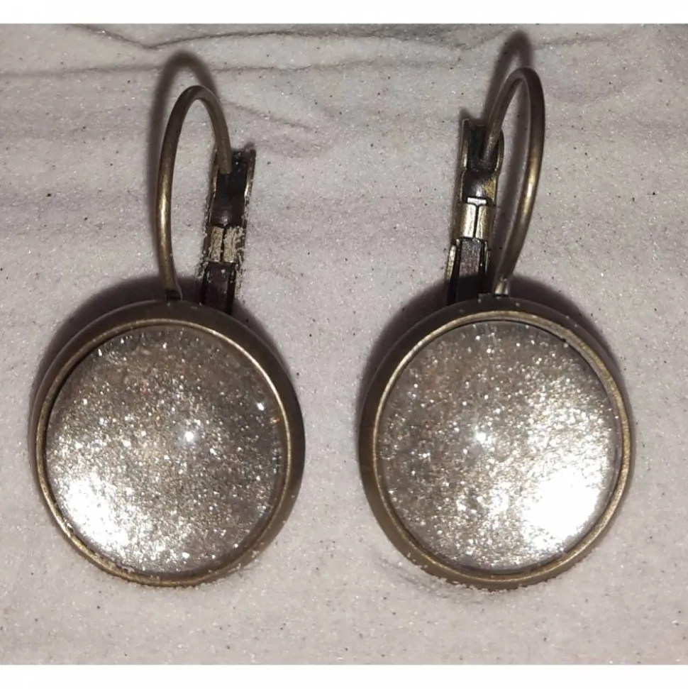 Im Detail: bronzefarbener Schmuck ist aus Messing, silberf Schmuck aus Kupfer, die 10mm Stecker aus 925er Silber, die 12mm Ohrstecker aus Edelstahl.