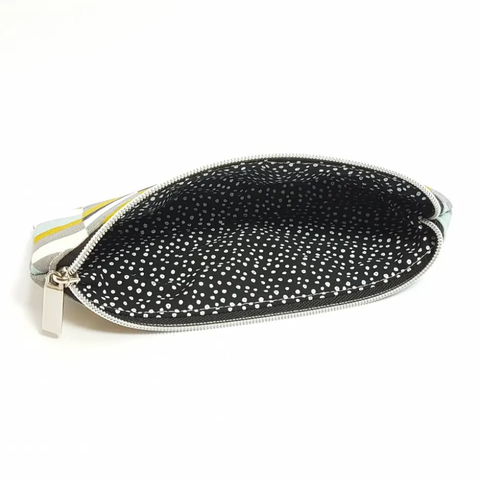 Der Futterstoff ist Baumwollstoff in schwarz mit weißen Pünktchen.
