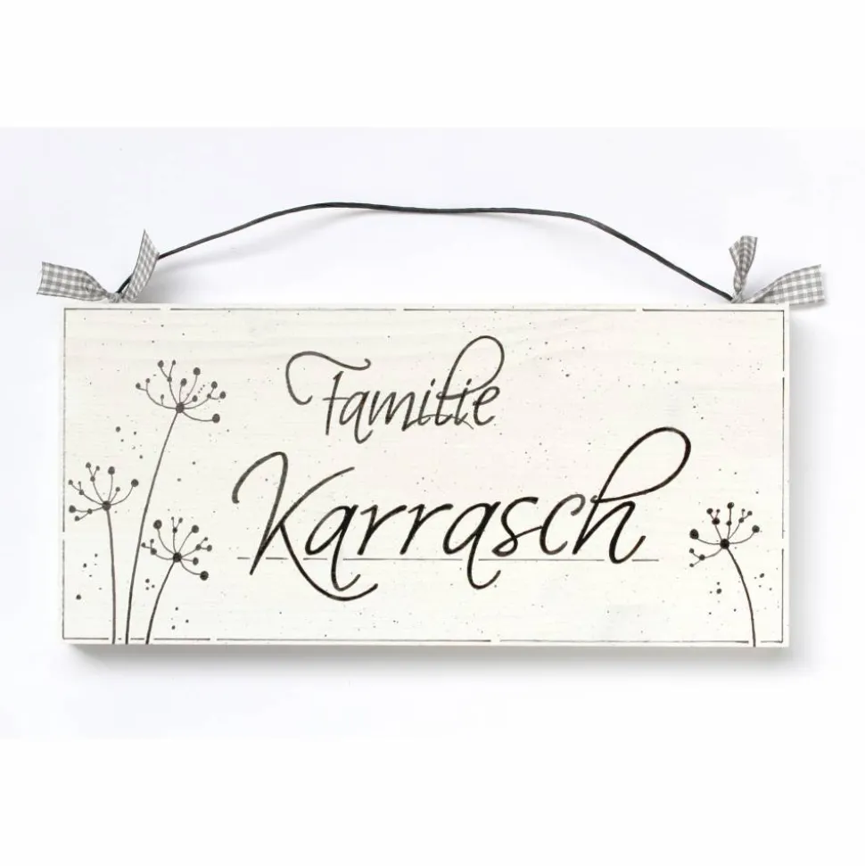 Jedes Schild ist ein handgefertigtes Unikat, mit viel Liebe zum Detail bemalt und mit stilvollen Pusteblumen links und rechts verziert. Das edle Namensschild ist robust, pflegeleicht und überzeugt durch seine zeitlos elegante Optik – ein absoluter Blickfang an jeder Haustür.