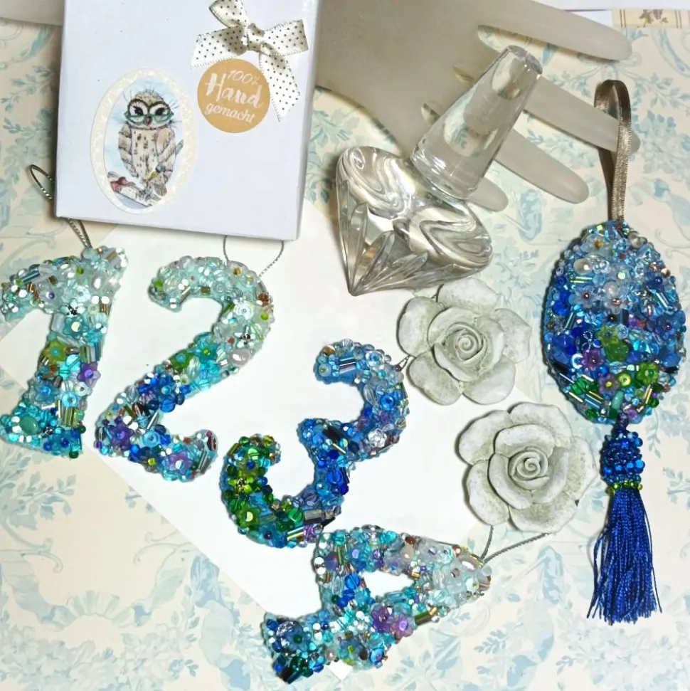 Das perlenbestickte Osterei ist innen gefüllt und fest aber doch angenehm weich gepolstert. Die Rückseite ist mit Perlen einer Farbe wie gepunktet gestaltet, die Anordnung als polka dots, also tanzende Punkte funkelt wertig im Licht. Das kommt besonders schön zur Geltung beim Einsatz vom Osterdei als Deko im Osterstrauß oder Taufgesteck. Auch toll als Tischdeko Aufleger zum Osterfest und anderen Anlässen.