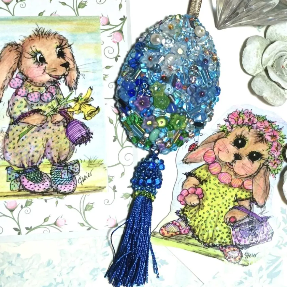 Ein ganz besonderes Osterei festlich glitzernd ist ein komplett handgemachtes und hochwertig handbesticktes Ei als Luxusausführung. Als tolle Luxus Osterdeko am Osterstrauss. Komplett von Hand gemacht und in der Opulenz auffälliger sehr aufwändig von mir handbestickte Osterei mit einer Vielzahl Roccailles verschiedener Art aus Glas gemixt mit Akzenten aus antiken Glasperlen, schimmernden weißen Süßwasserzuchtperlen und Blütenperlen in Nuancen von mint, türkis, blau lavendel und hellrosa werden in dieser Luxus Wohndeko harmonisch in Szene gesetzt.. Das Ei kann am Satinband ausfgehängt oder angelehnt gestellt werden. Jedes prunkvolle Osterei ist ein Unikat, ein von mir mit Liebe gefertigtes Einzelstück. Besonders schön lassen sich einzelne handbestickte persönliche Buchstaben und Zahlen zum Osterei im Strauss kombinieren. Es sieht toll und sehr wertig aus auch als Wanddeko. Die Bestellung bezieht sich auf genau dieses eine abgebildetenOsterei in blau türkis mit der üppigen perlenverzierten Quaste.