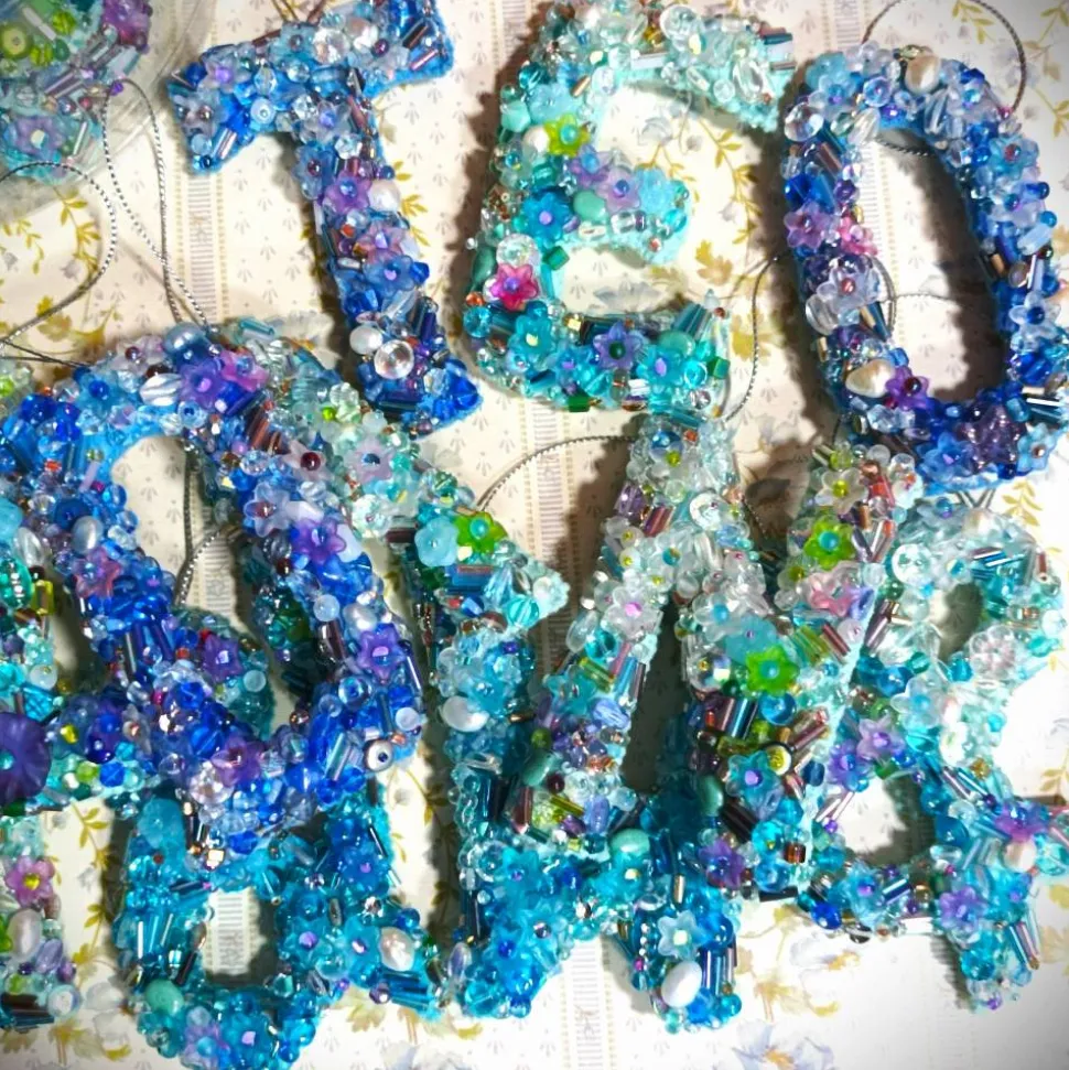 Ornament türkis blau Unikat Perlenstickerei handgemacht Prunkei pompös handmade Baumschmuck Wohndeko