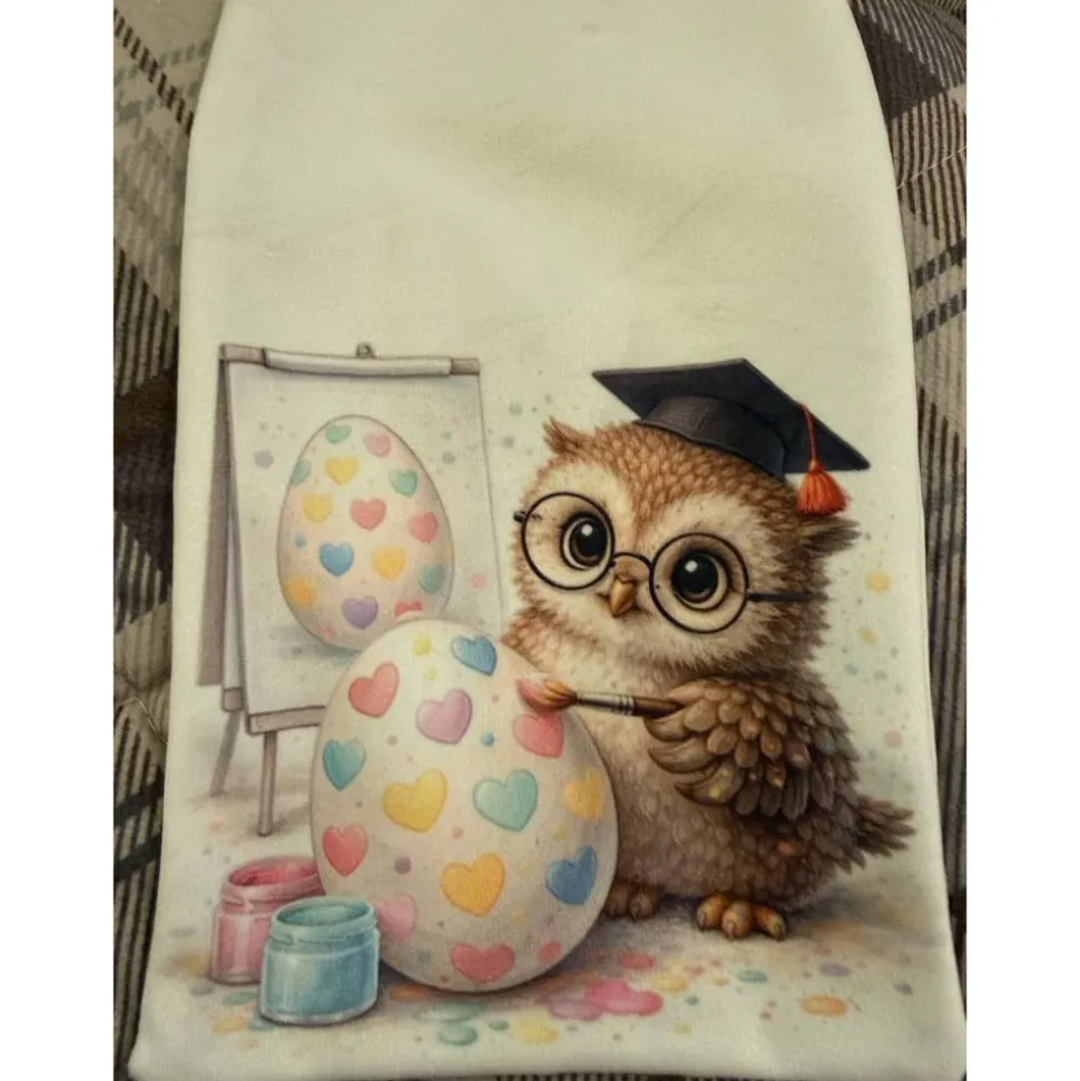 Oster Geschenkbeutel Eule – handgenähtes Unikat aus Polstervelours