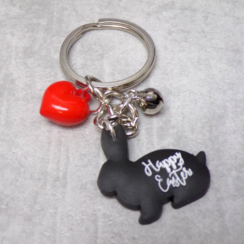 Entdecke den einzigartigen Oster Schlüsselanhänger Hase mit Happy Easter Schriftzug! Klein, frech und ganz klar im Oster-Modus bringt dieser schwarze Osterhase frischen Wind an deinen Schlüsselbund – ganz ohne Kitsch, aber mit einer ordentlichen Portion Humor.