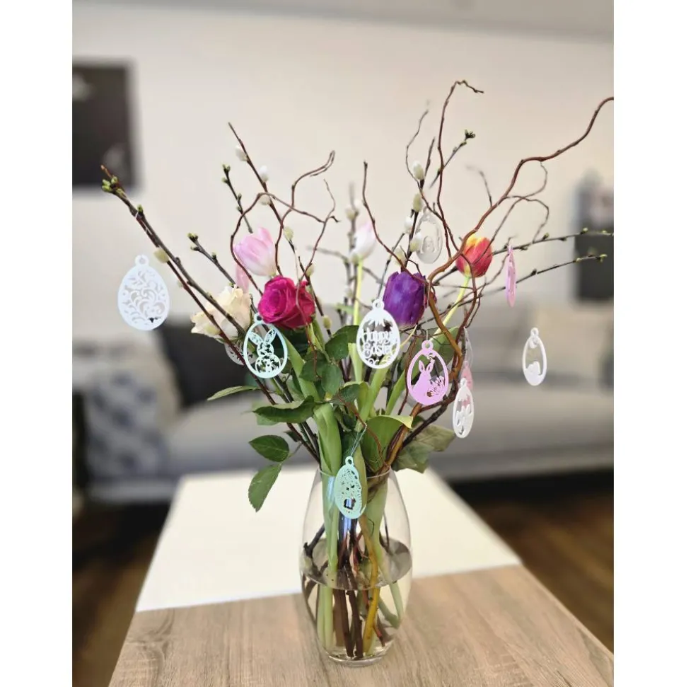 Diese besonderen Anhänger sind das perfekte Highlight für deine Frühlingsdeko und bringen frischen Schwung in deine vier Wände. Ob am Osterstrauch, am Fenster, an Zweigen in der Vase oder als kleines Detail an einem Geschenk – sie sorgen überall für eine fröhliche Atmosphäre.
