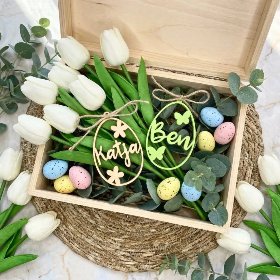 Diese Osteranhänger verbinden Tradition und modernes Design: ein frühlingshaftes Motiv, ein Name, der zu jemandem gehört – und eine Deko, die Du jedes Jahr wieder hervorholen kannst, weil sie eben nicht „irgendein“ Anhänger ist, sondern Deiner.