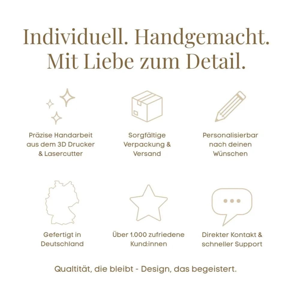 Jeder Anhänger wird nach der Herstellung sorgfältig geprüft, damit die Kanten sauber sind und das Design im Ei harmonisch wirkt. So bekommst Du eine moderne Osterdeko, die leicht, schlicht und trotzdem besonders ist – und gleichzeitig ein schönes kleines Ostergeschenk für Kinder, Familie, Freund:innen oder als Mini-Überraschung im Osterkorb.