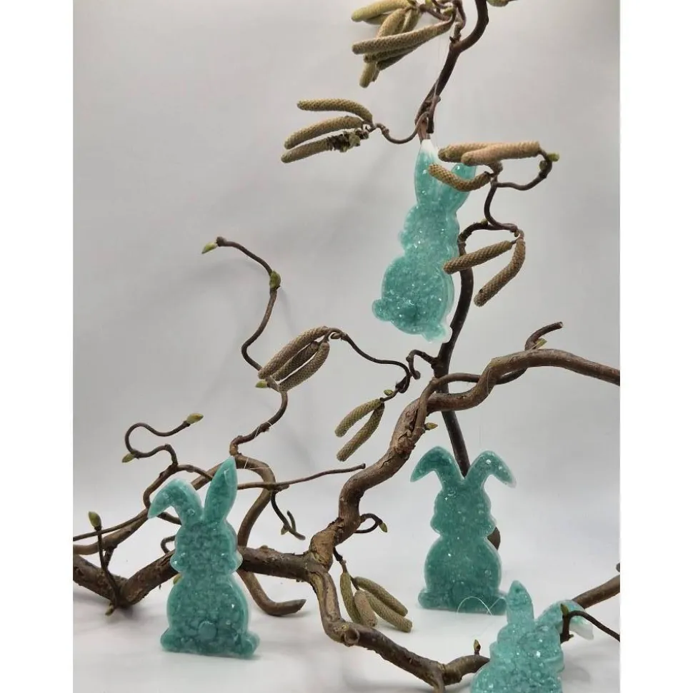 Diese zauberhaften kleinen Hasen bringen pure Magie in deine Dekoration. Jeder Hase wird liebevoll von Hand gefertigt und begeistert mit seinem einzigartigen Druzy-Effekt, der wie funkelnde Kristalle im Licht schimmert. Die zarten Mint und die glitzernden Akzente machen jedes Stück zu einem echten Blickfang.