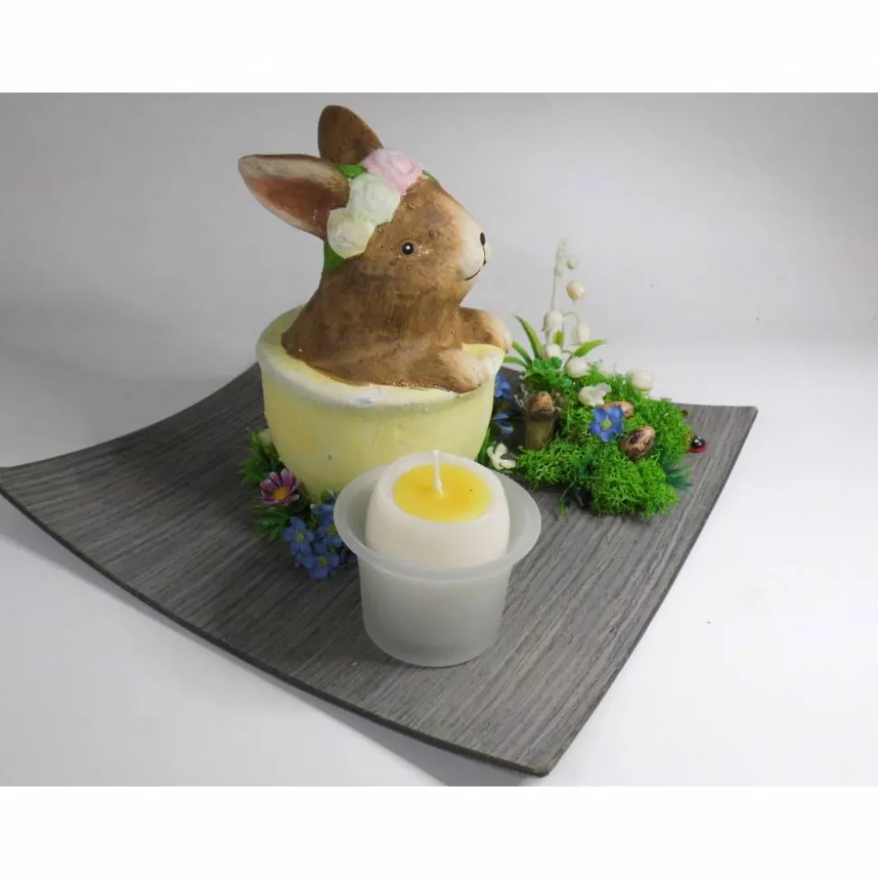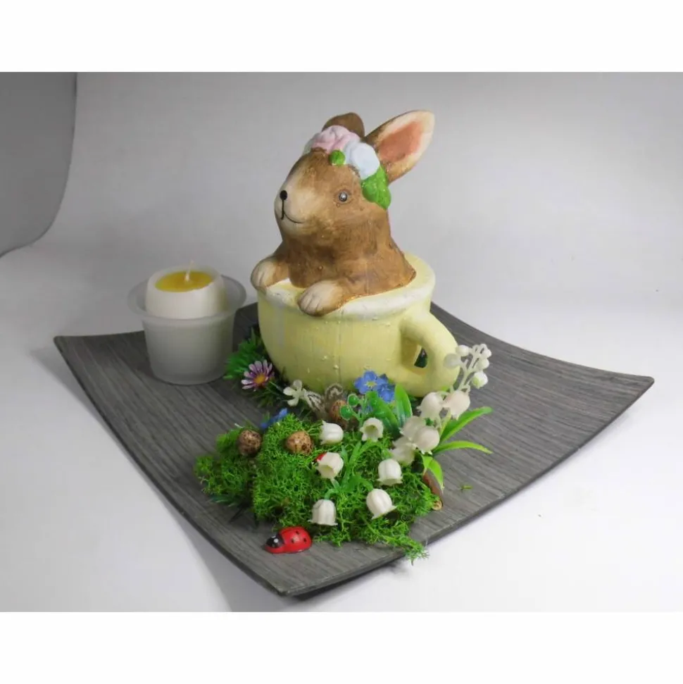 Verleihe deinem Osterfrühstück einen besonderen Charme mit dieser Oster Tischdeko: Hase in der Tasse mit Eikerze!