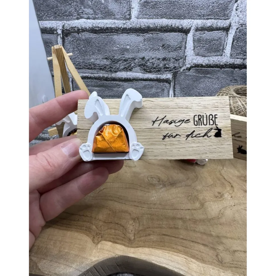 Ihr bekommt hier einen kleinen Hasen, der mit etwas süßes gefüllt werden kann.