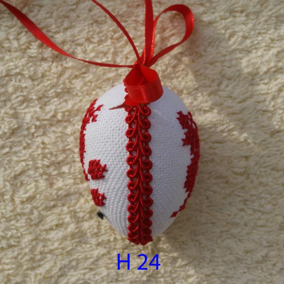 Osterdeko, Kreuzstich Osterei,  Oster Motiv  Handgestickt, rot-weiß 6cm