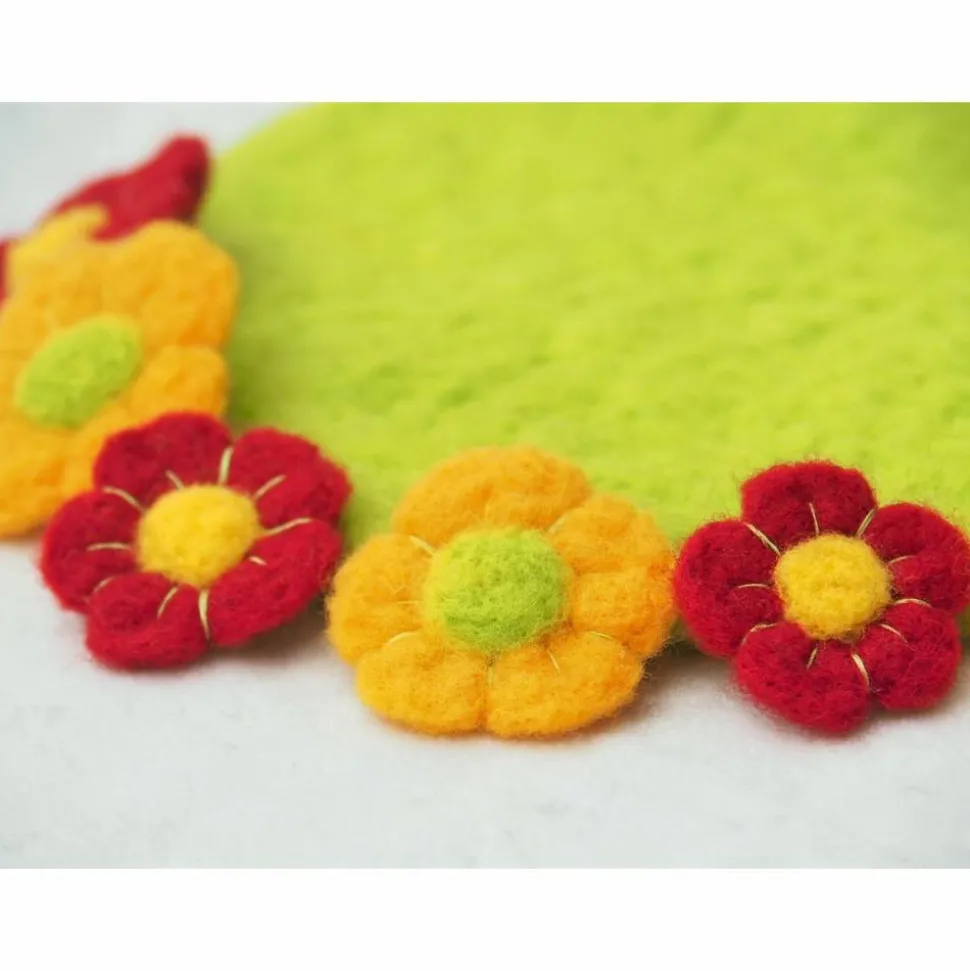 Dekoriere zur Frühlings- oder Osterzeit dein zu Hause mit dieser zauberhaften Blumenwiese aus Nadelfilz. Die Wiese eignet sich toll als Tischdeko oder dekoriere sie mit anderen Osterartikeln. Auch toll als Osternestdeko! Sie wird in Handarbeit aus 100 % Wolle angefertigt. Die runde Wiese ist in einem sattem hellgrünen Ton, die Blumen sind in kräfigem roten und orangenen Ton gearbeitet. Sie hat eine handliche Größe von ca 22 cm Durchmesser.