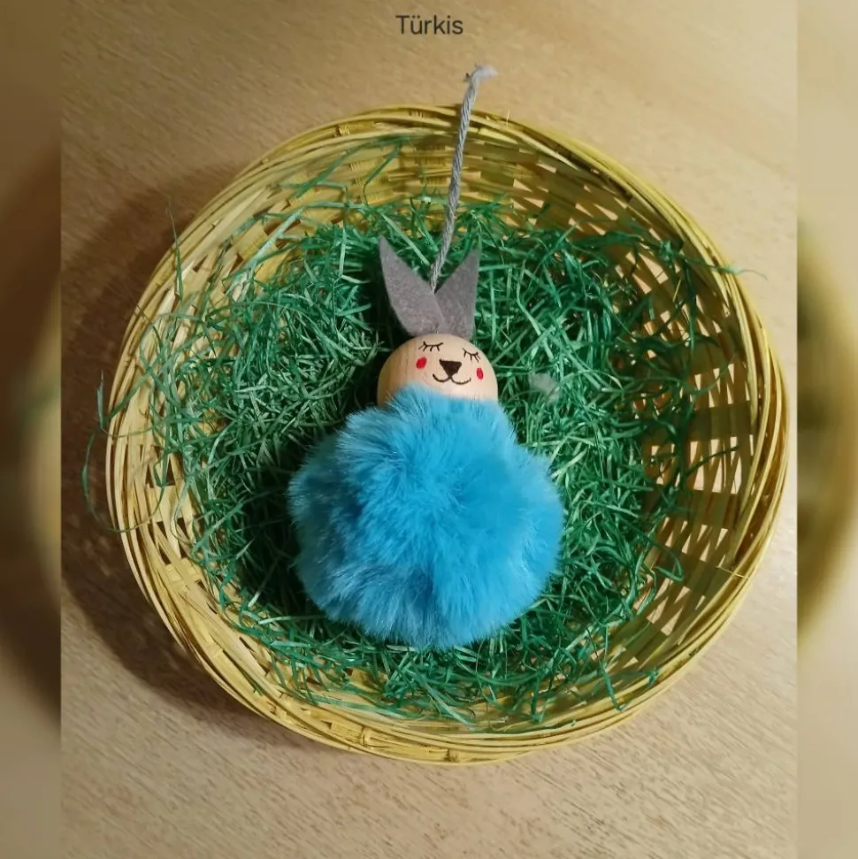 Jedes niedliche, handgefertigte Plüsch-Häschen besteht aus einem weichen Pompon, der ihm eine kuschelige, voluminöse Optik verleiht. Die angenehme Haptik macht die Häschen-Anhänger nicht nur zum Blickfang, sondern auch besonders charmant für Kinder und Deko-Liebhaber.