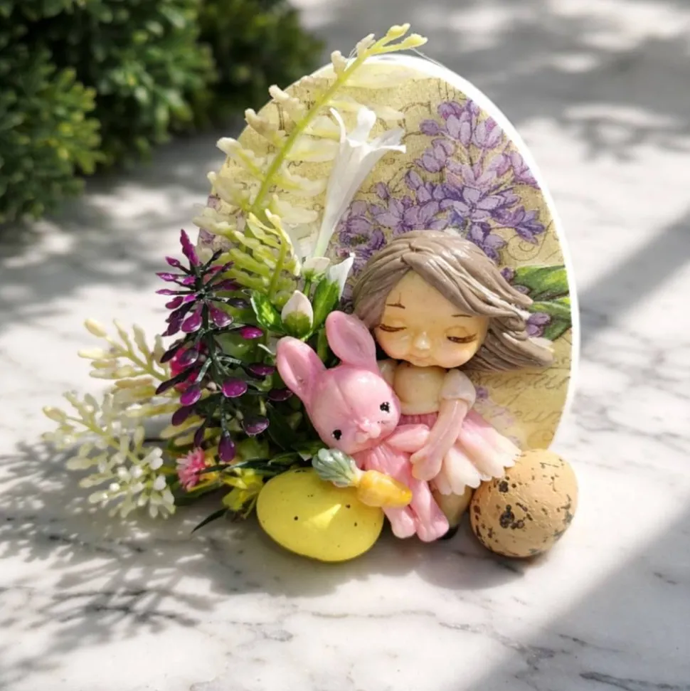 Das Osterei wurde aus Xyrarock gemacht und die Verzierung ist aus Kaltporzellan in Handarbeit modelliert