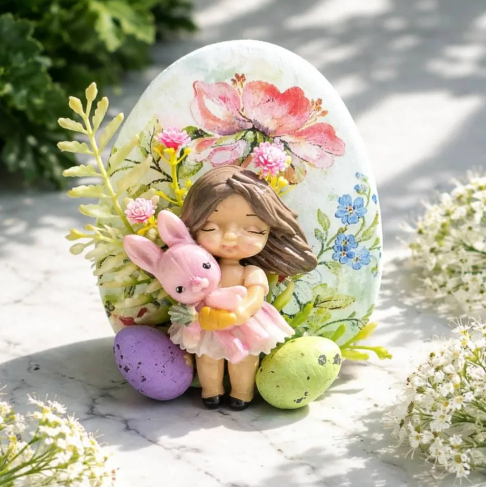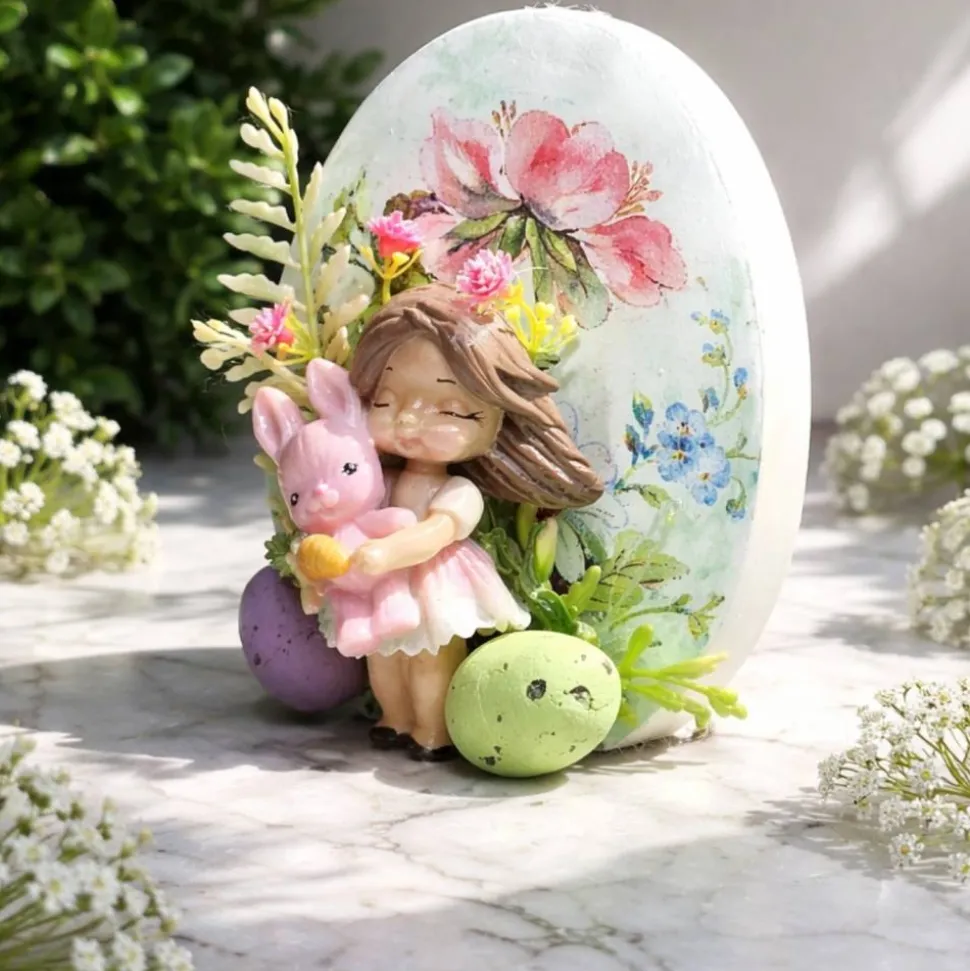 Das Osterei wurde aus Xyrarock gemacht und die Verzierung ist aus Kaltporzellan in Handarbeit modelliert
