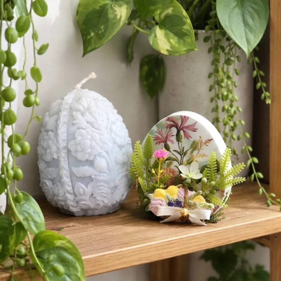 Das Osterei wurde aus Xyrarock gemacht die Verzierung ist aus Kaltporzellan in Handarbeit modelliert und es misst ca. 9,0×8,0x3,0 cm