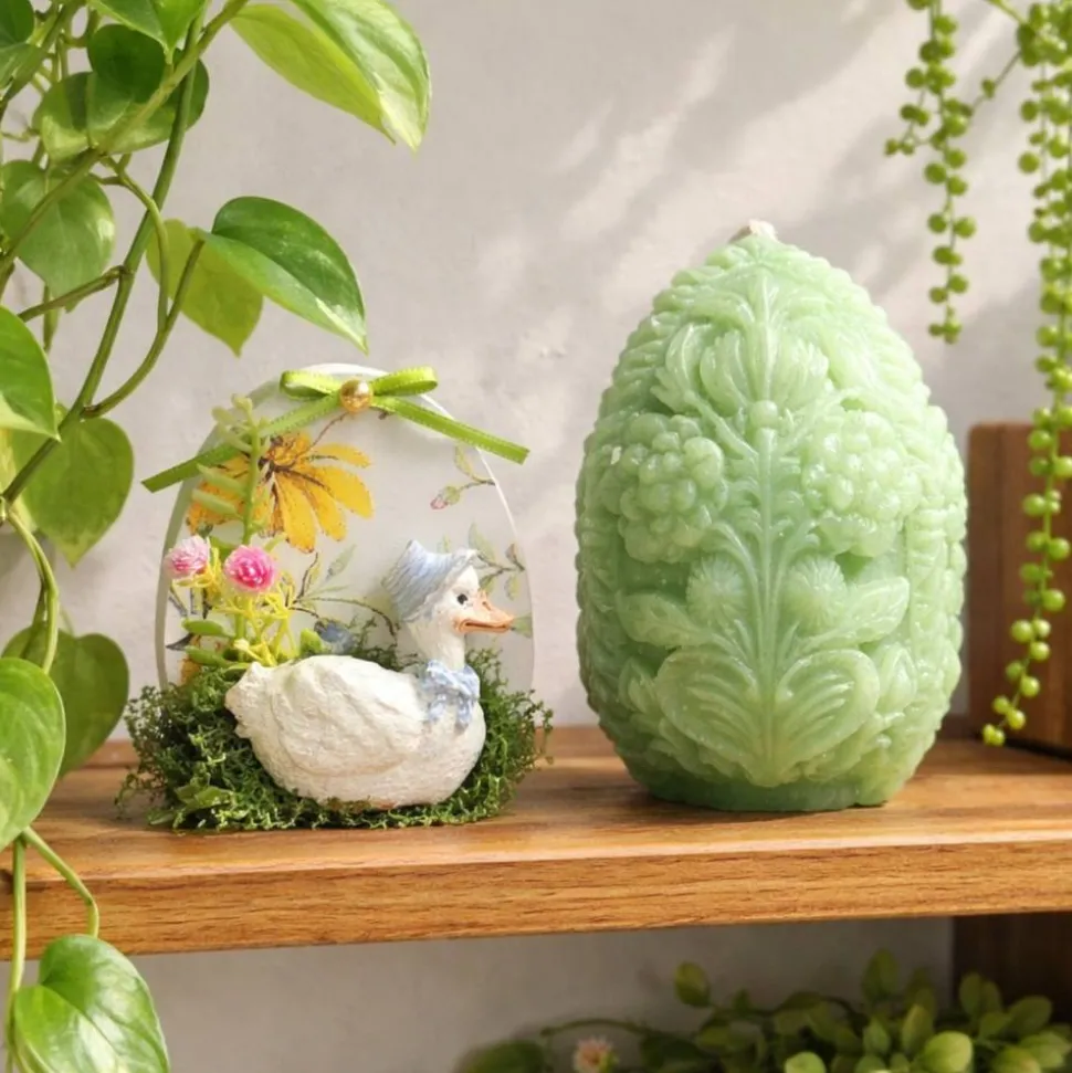 Das Osterei wurde aus Xyrarock gemacht die Verzierung ist aus Kaltporzellan in Handarbeit modelliert und es misst ca. 9,0×8,0x3,0 cm