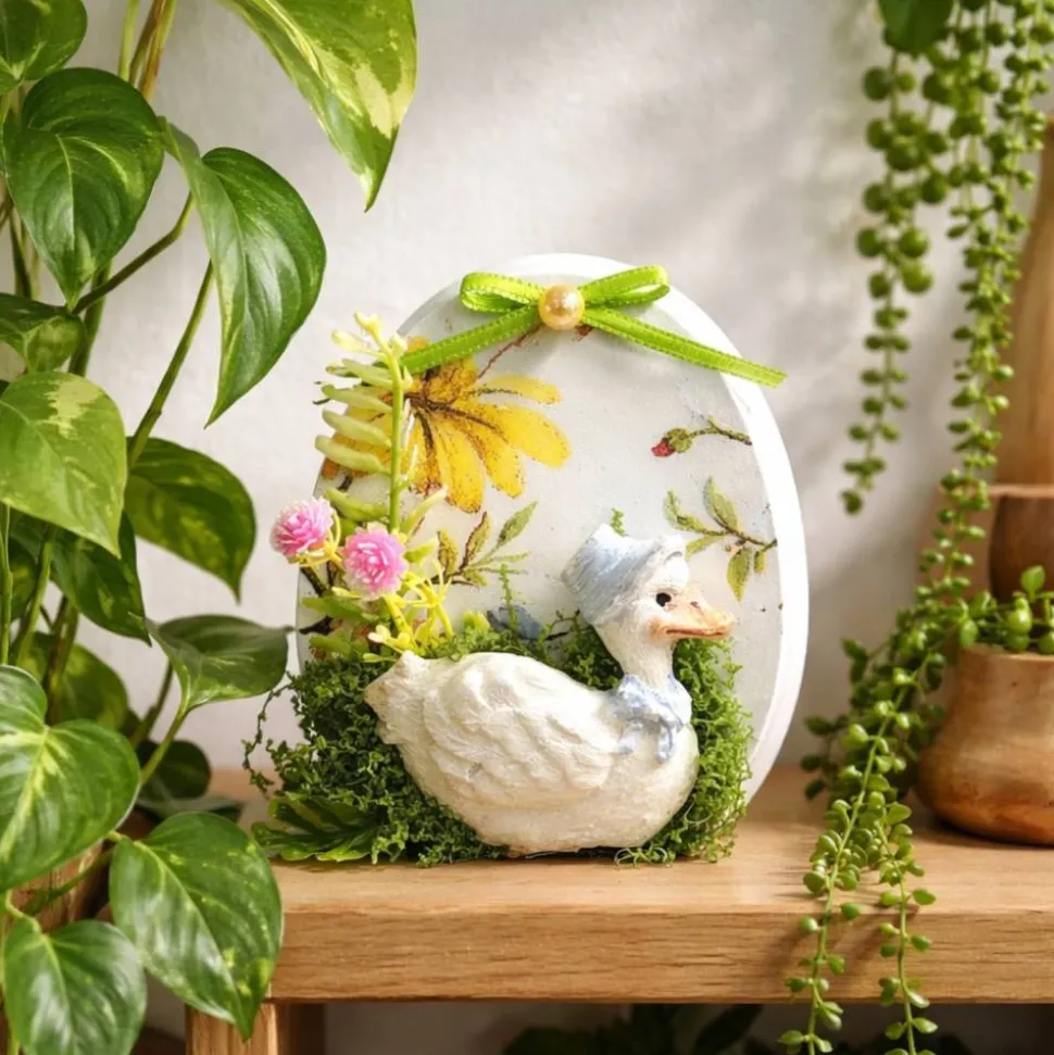 Die wunderschöne Osterdekoration besteht aus zwei Elementen die sofort ins Auge fallen: