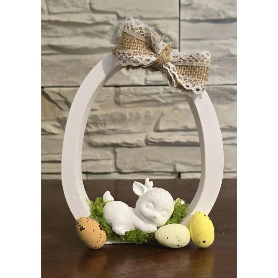Geschmückt wurde sie mit schönen Ostereier, einer Schleife und einem süßen Baby Reh das auf dem Gras schläft.