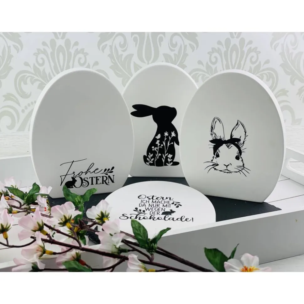 Ein Highlight: Du kannst dieses Osterei nach deinen Wünschen beplotten lassen – wähle zwischen einem süßen Hasen oder einem inspirierenden Spruch. So wird das Osterei nicht nur zu einem Deko-Element, sondern zu einem echten Unikat, das deiner Osterzeit eine persönliche und festliche Atmosphäre verleiht.
