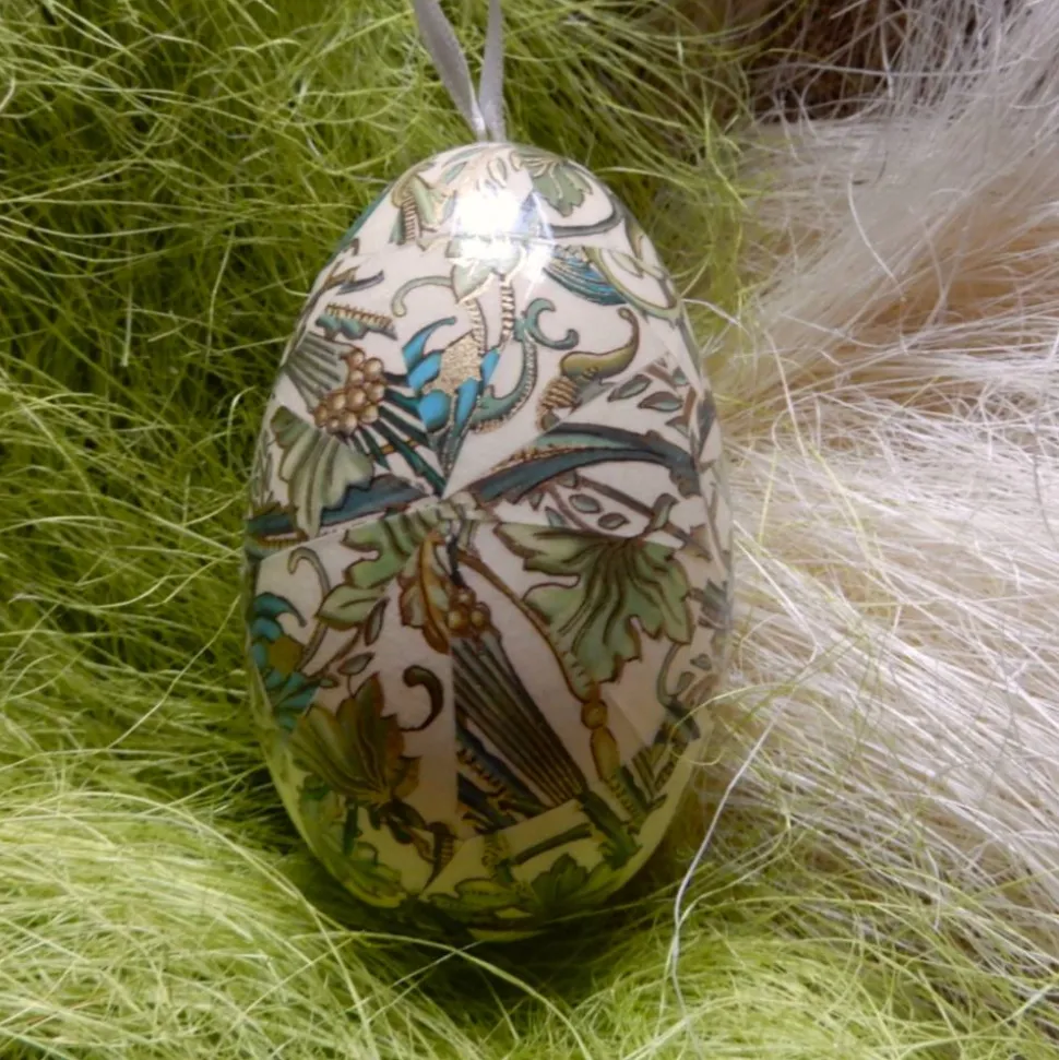 Italienisches Florentiner Buntpapier besticht durch seine brillanten Farben, einzigartigen Muster und hochwertige Qualität. Die aufwändige Decoupage-Technik sorgt dafür, dass dieses Osterei ein besonderer Blickfang für Deine Osterdekoration ist – ideal auch als Geschenk oder zum Sammeln.