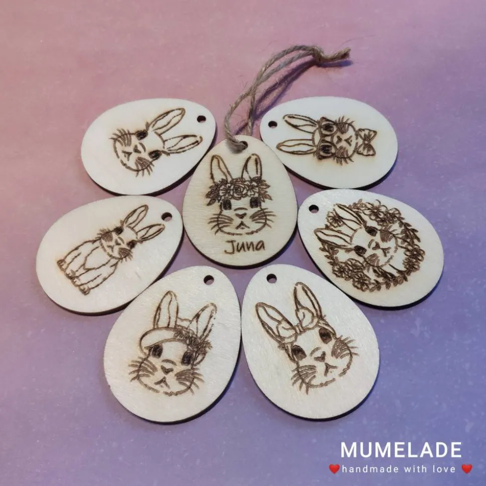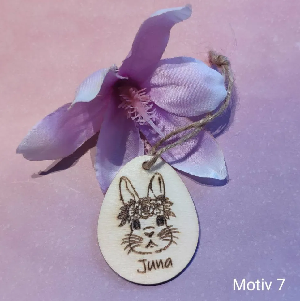 Süße kleine Ostereier mit Hasenmotiven und Namen.