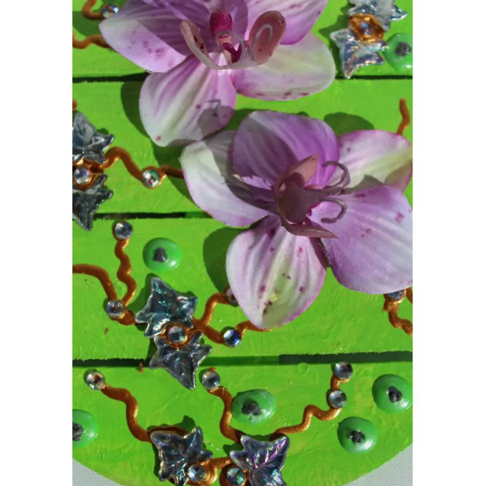 Mit Orchideenblüten und Glitzerelementen verziert.