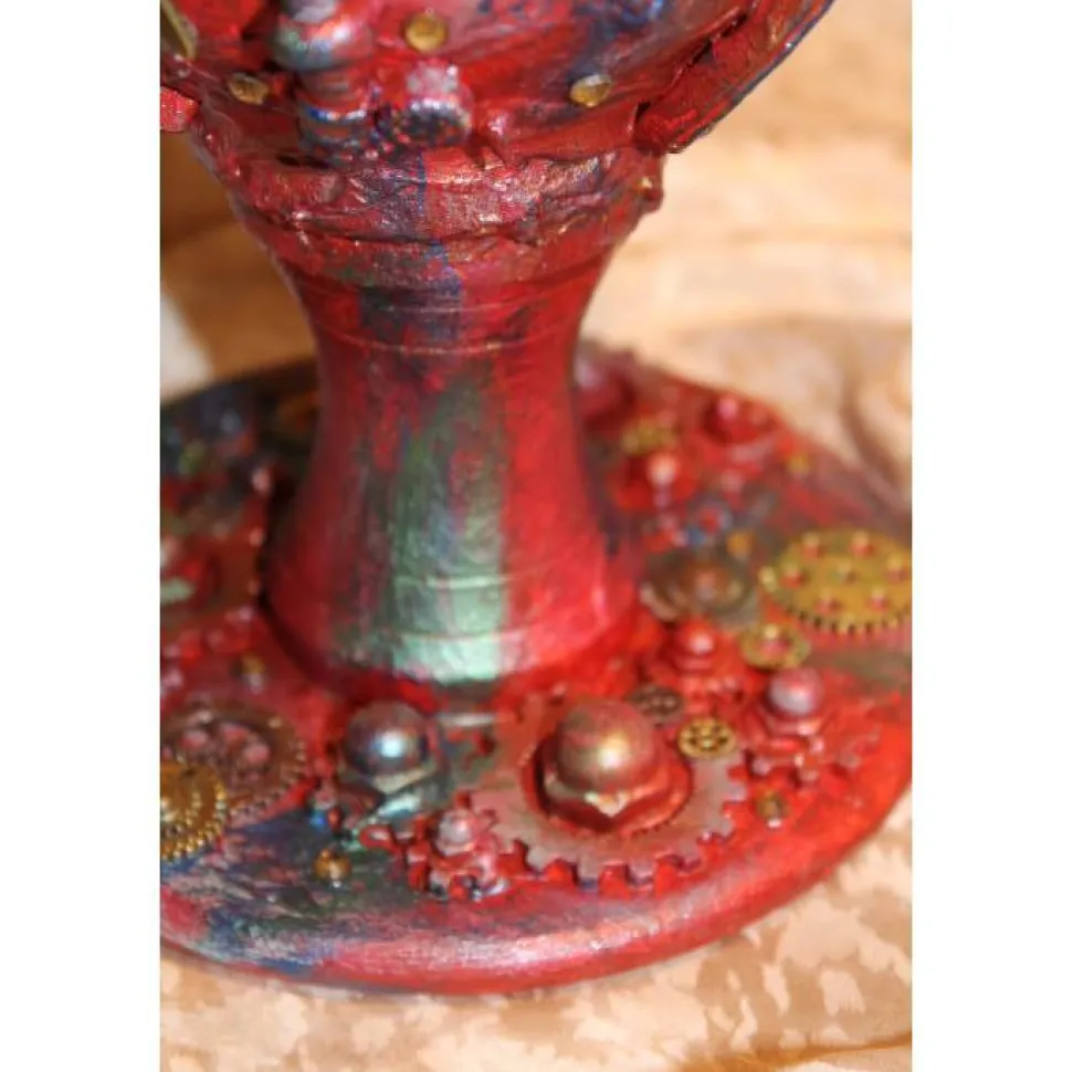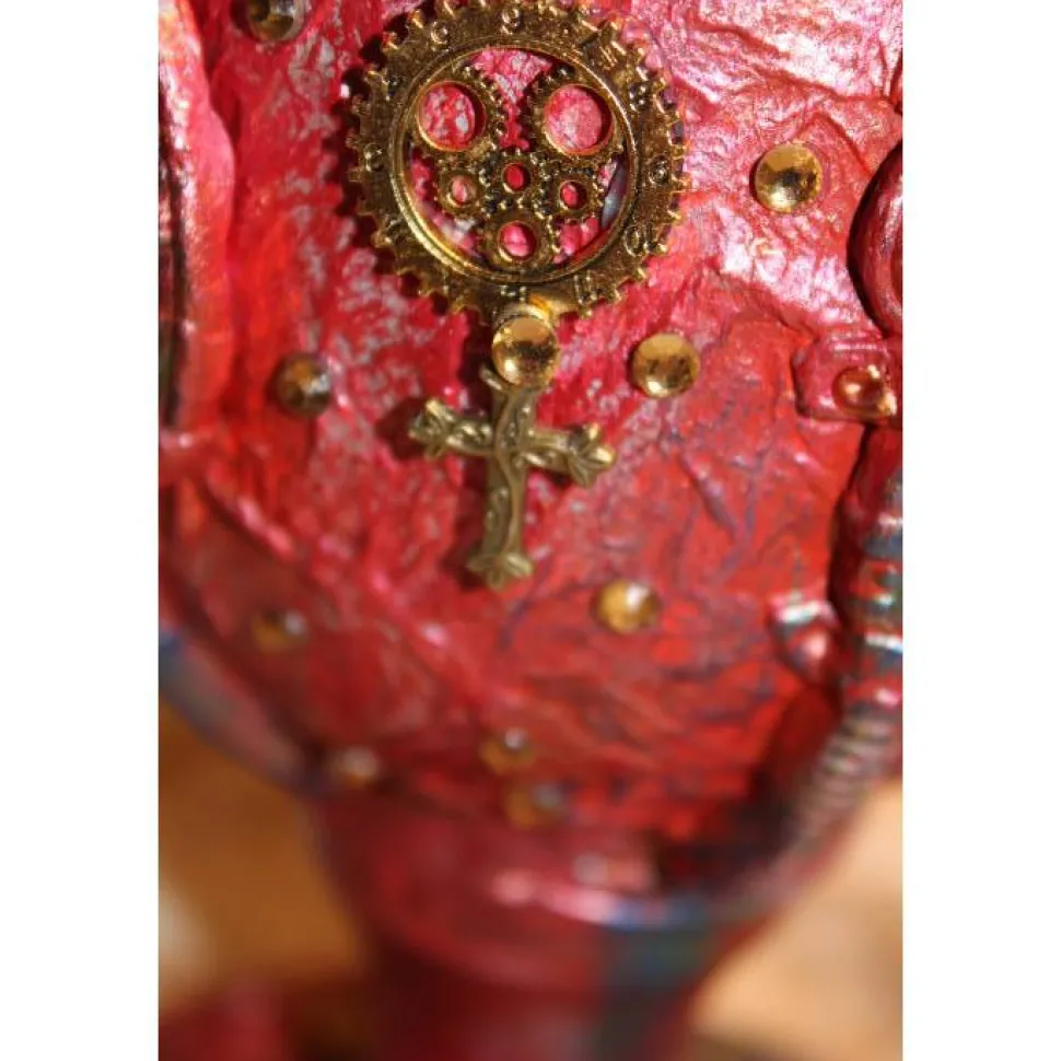 Der Körper des Objektes ist aus Kunststoff und innen hohl, einige Dekorteile sind handgefertigt aus Modeliermasse. Die Zahnräder, Kreuze, Fleur de Lis, Scheren und Hutmuttern bestehen aus Metall. Einige Zahnräder sind aus Holz.