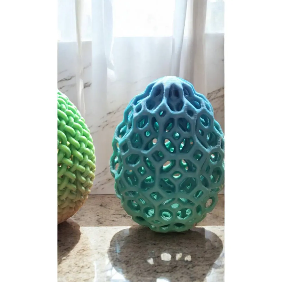 Die 3D-Druck-Technologie erzeugt feine, sichtbare Schichten, was jedes Ei besonders und individuell macht. Die Eier sind sehr leicht, aber dennoch stabil. Bitte beachte die Pflegehinweise: Vermeide Temperaturen über 40°C, schütze das Produkt vor direkter Sonneneinstrahlung und gib es nicht in die Spülmaschine. Bei starker Gewalteinwirkung kann das Ei brechen und Verletzungen verursachen.