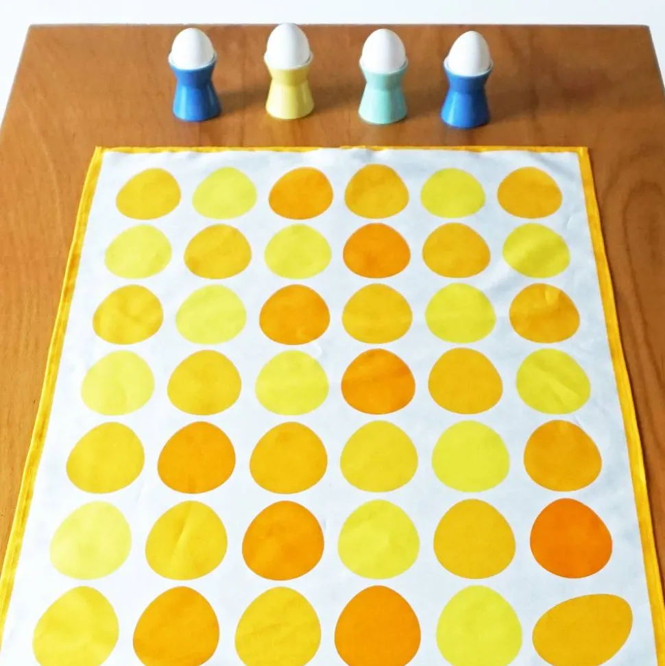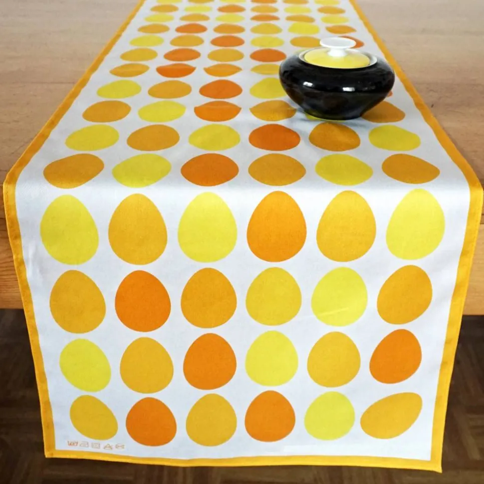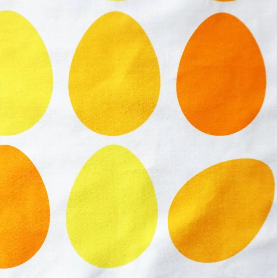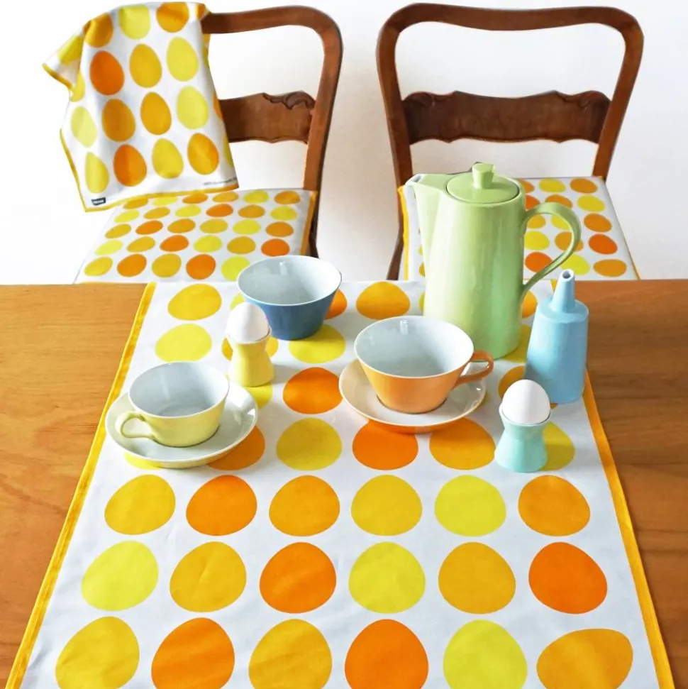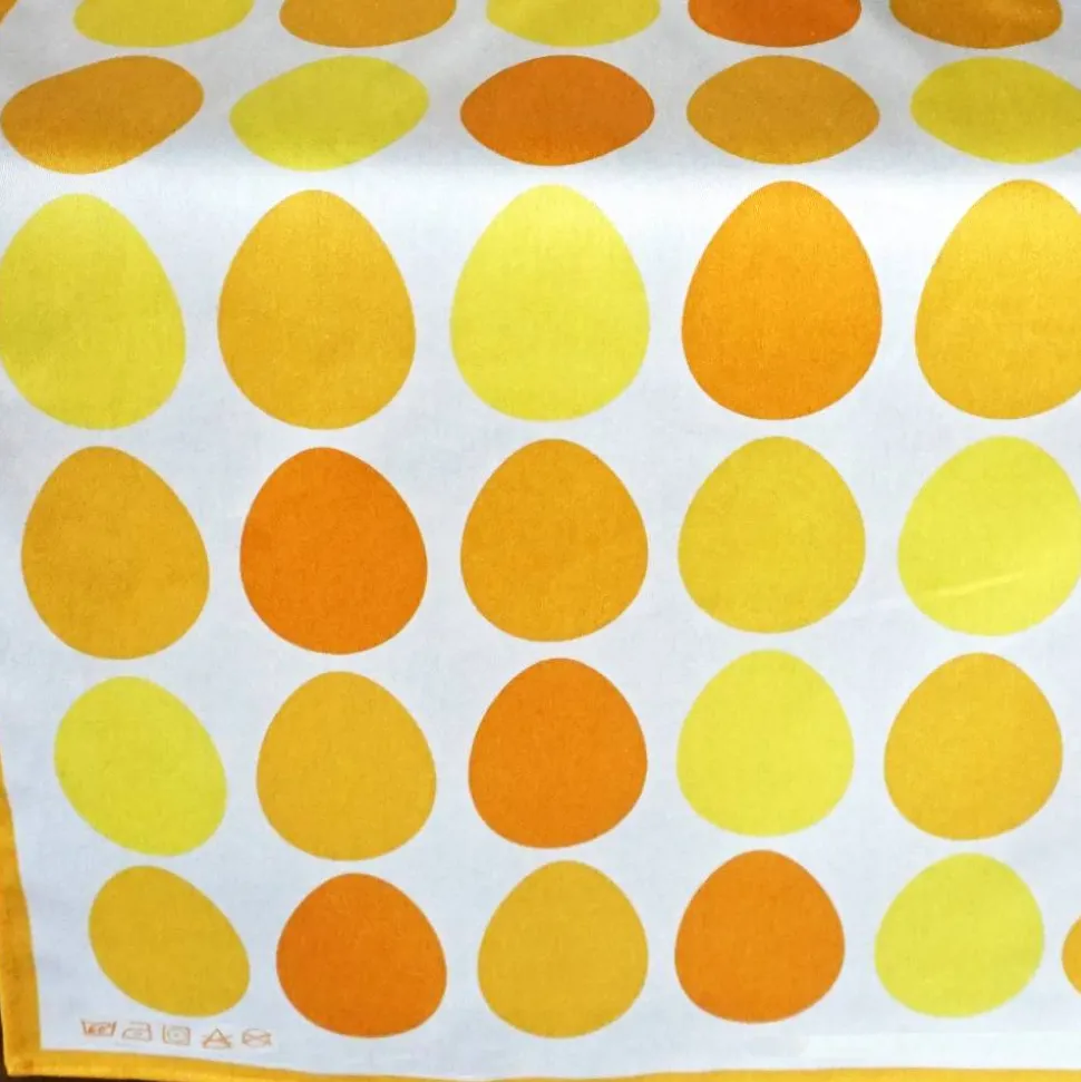 Das Eier-Motiv gibt es auch als Geschenkpapier, als Halstücher in verschiedenen Farben und Kissenbezug.