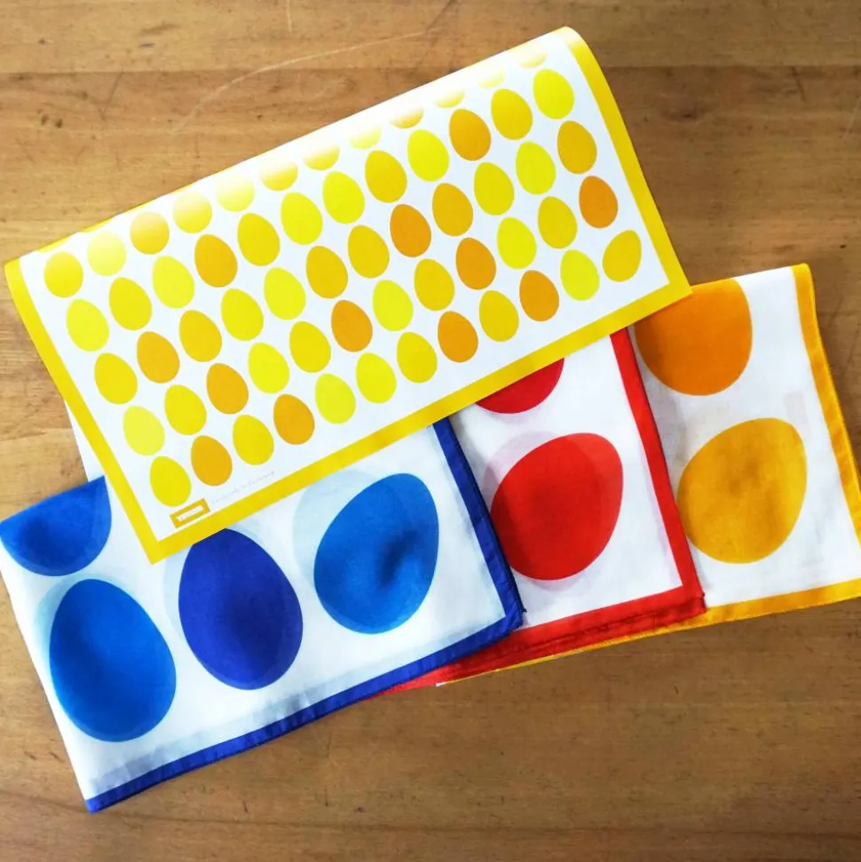 Das Tuch gibt es auch in den Farben: GELB, ROT + GRÜN, als Kissenbezug, Tischläufer und als Geschenkpapier.