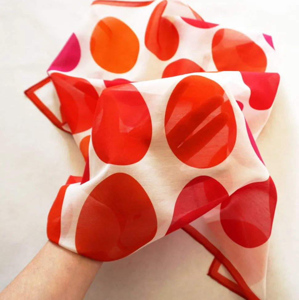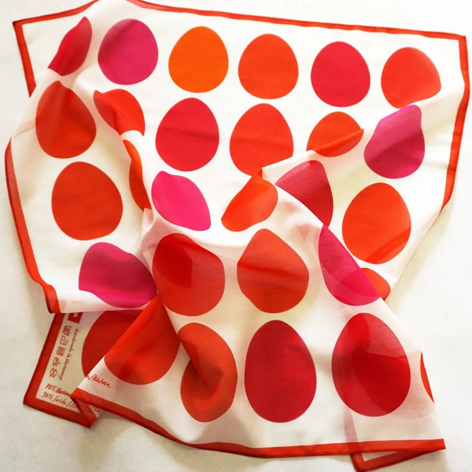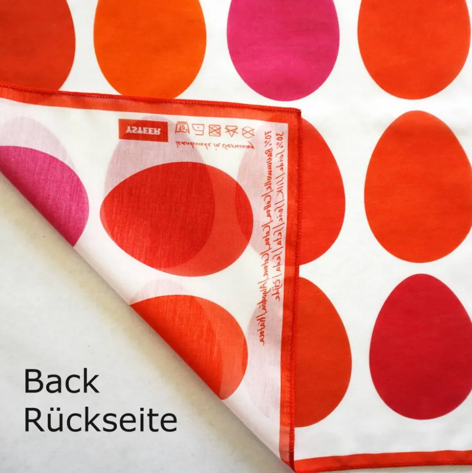 Das Tuch gibt es auch in den Farben: GELB, BLAU + GRÜN, als Kissenbezug, Tischläufer und als Geschenkpapier.