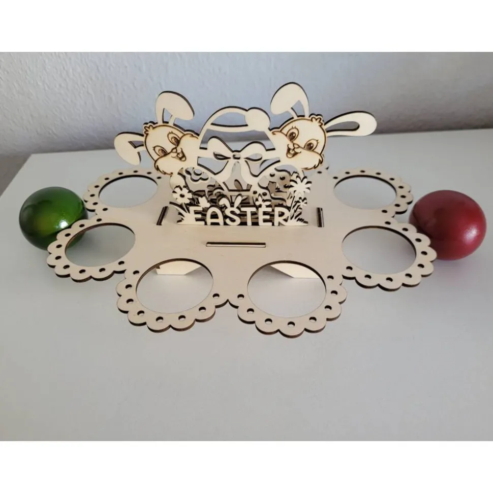 Es haben 8 bunte Eier drauf Platz.