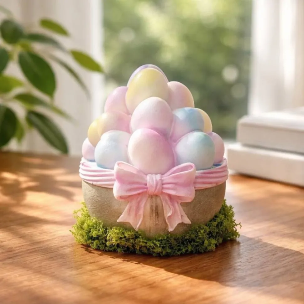 Der Korb mit Ostereier aus Xyrarock wurde mit liebe zum Detail gefertigt und handbemalt.