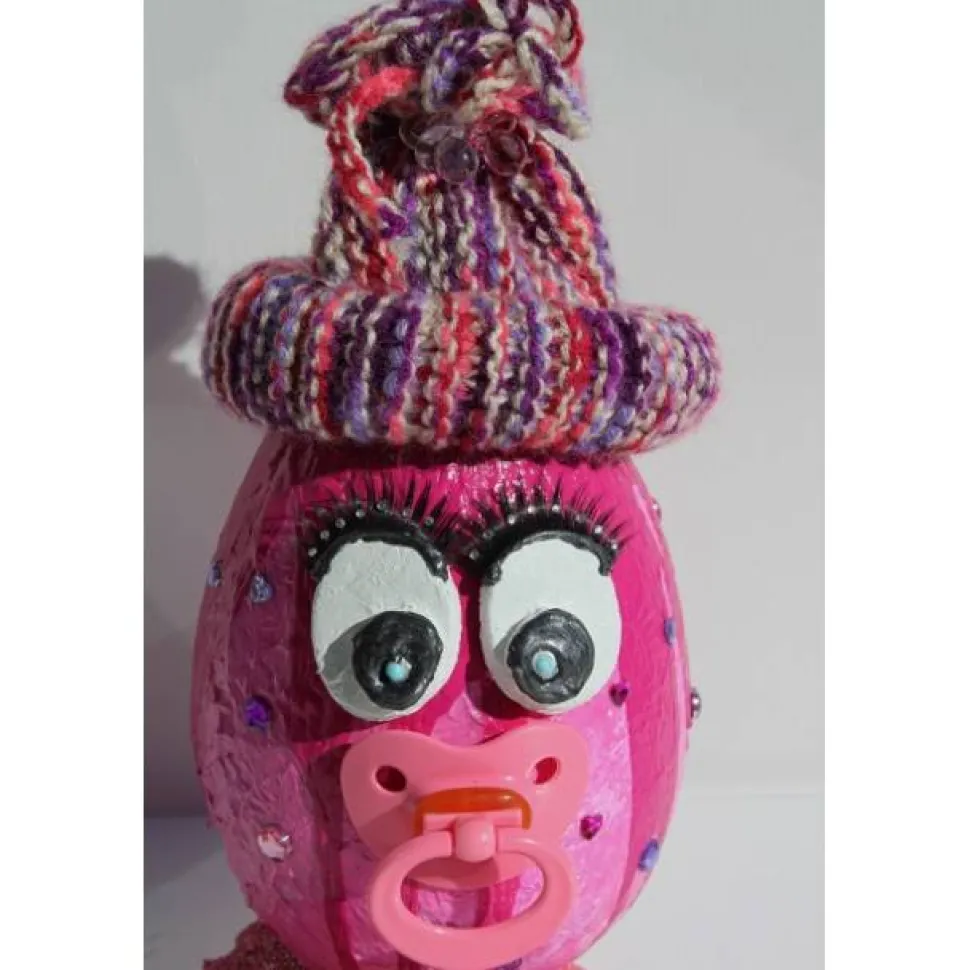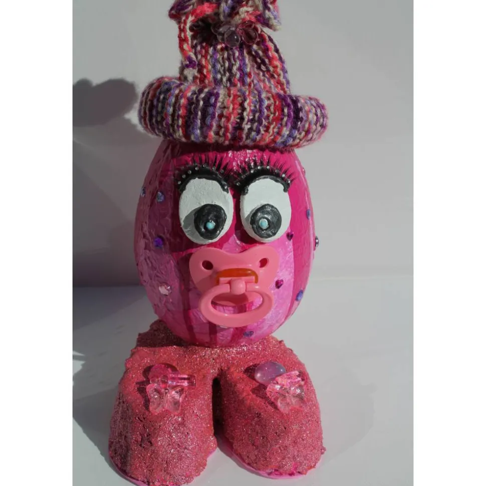 Nettes Geschenk für Eier-Fans oder für die Deko im Babyzimmer. Jilly kann auch als Geldgeschenk zur Geburt oder für die Babyparty verwendet werden. Am Mützchen kann eine Klammer befestigt werden und dort dann ein Geldschein angebracht werden.