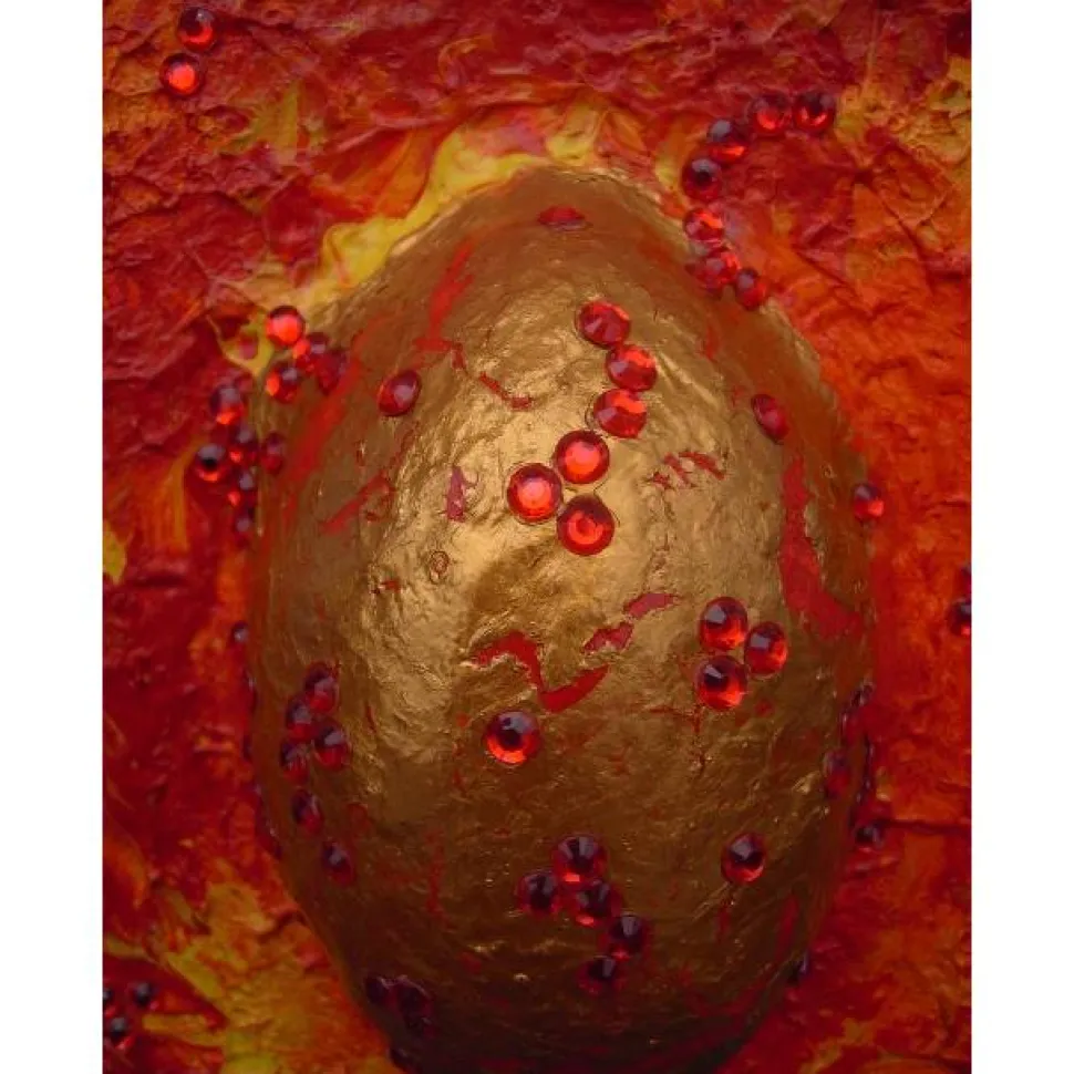 Keinen Platz für Oster-Deko? Jetzt schon ;), denn dieses Ei können Sie an der Wand platzieren. Verrückte, abstrakte Gestaltung auf einem Keilrahmen mit integriertem Halb-Osterei. 🙂