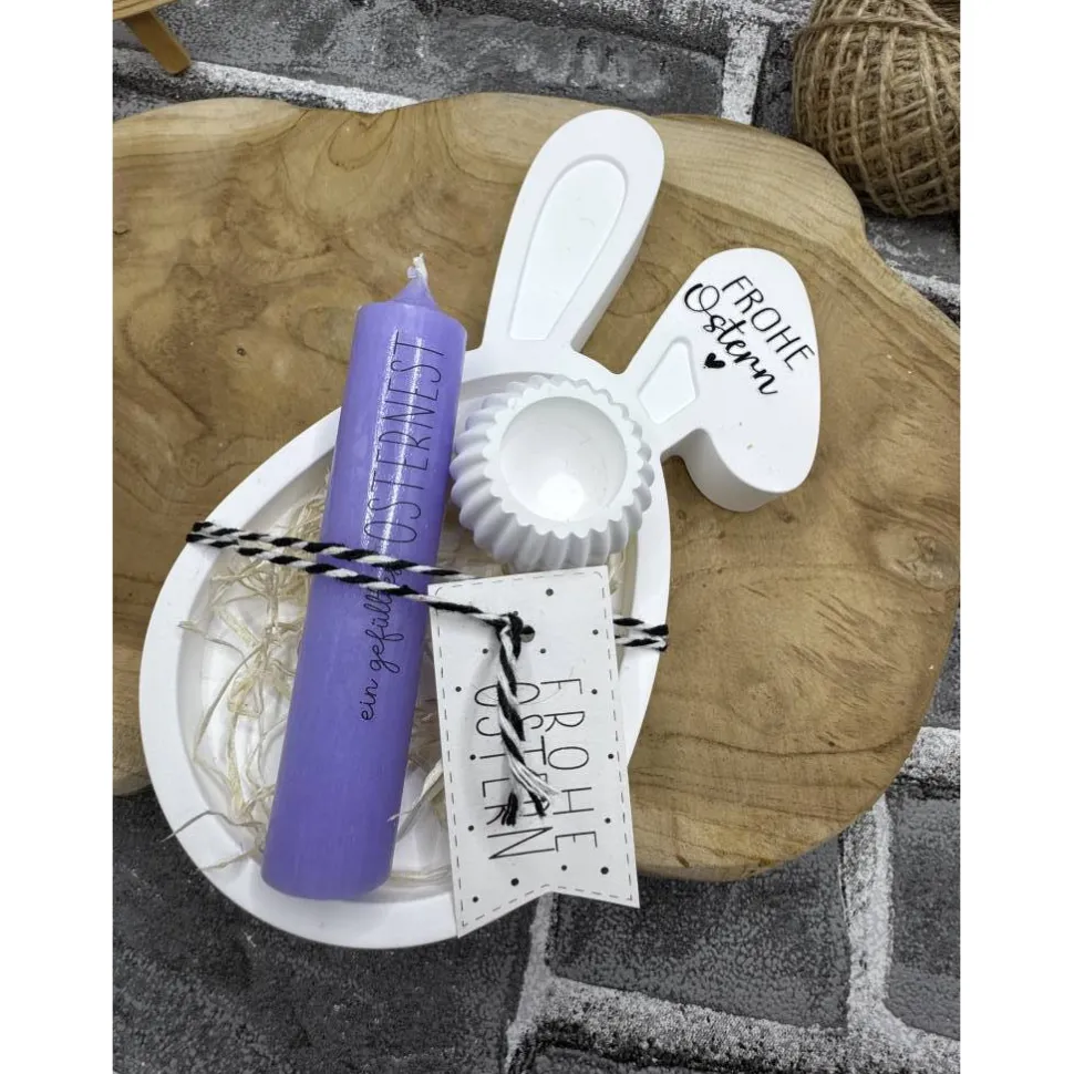 Ein hübsches kleines Ostertablett mit Kerze und Kerzenhalter.