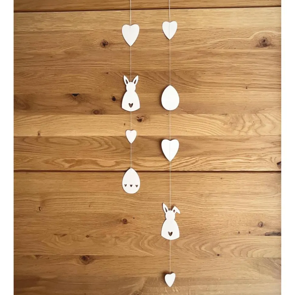 Die Schneidedatei für die Girlande habe ich selbst erstellt. Jede Girlande wird von mir mit dem Plotter geschnitten und fertig aufgefädelt verschickt – so kannst Du sie direkt aufhängen und Deine Osterdeko sofort genießen.