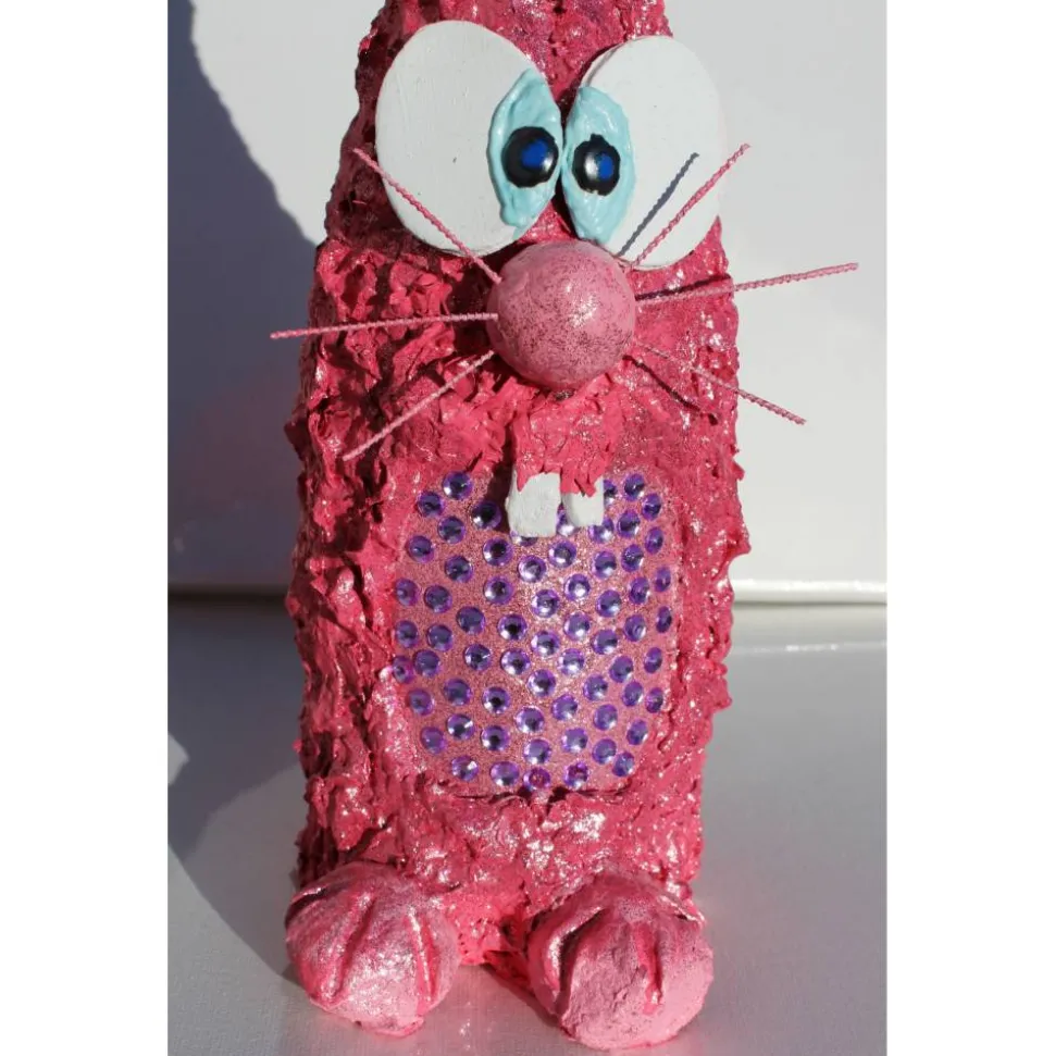 Witziges Upcycling-Projekt aus einer Glasflasche, gestaltet mit Acrylfarbe, Pappmache und Modelliermasse.