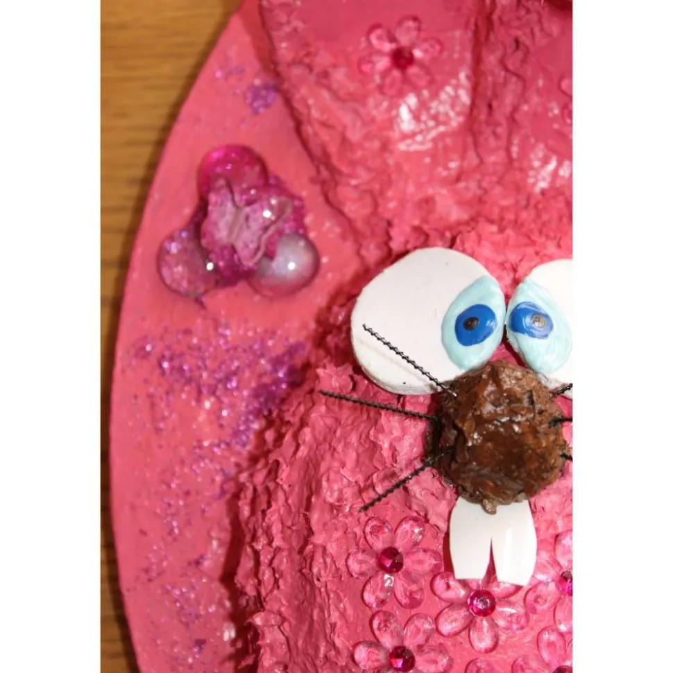 Diese kleine künstlerische Gestaltung hat überall Platz. Der Osterhase ist auf einem Keilrahmen in Ei-Form gestaltet. Also die ultimative Kreuzung aus Ei und Hase ;). Nicht groß, aber dafür ein echter Hingucker und hat an jeder Wand Platz