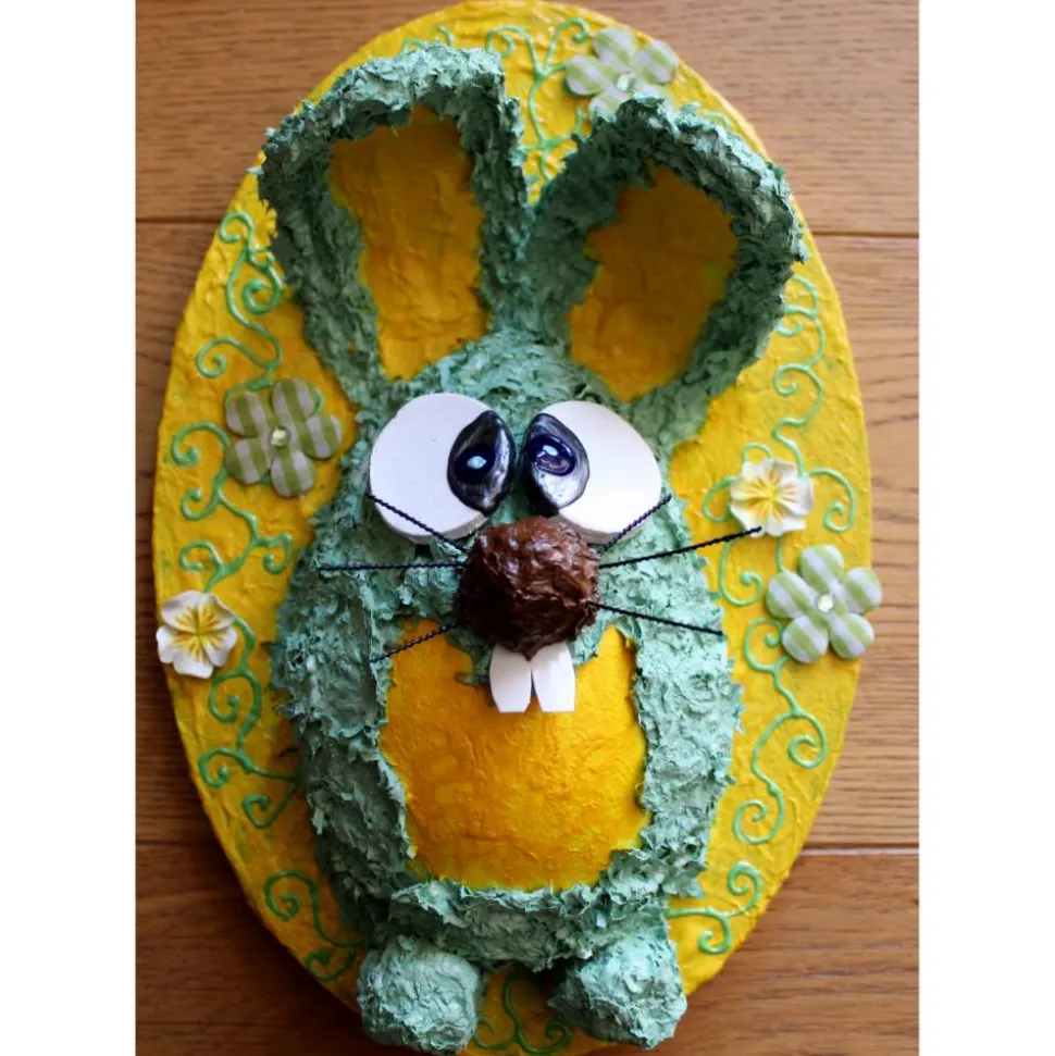 Größe: ca. 30 cm hoch, ca. 20 cm breit, die Gestaltung ist auf Höhe des Hasenbäuchleins ca. 10 cm dick ;).