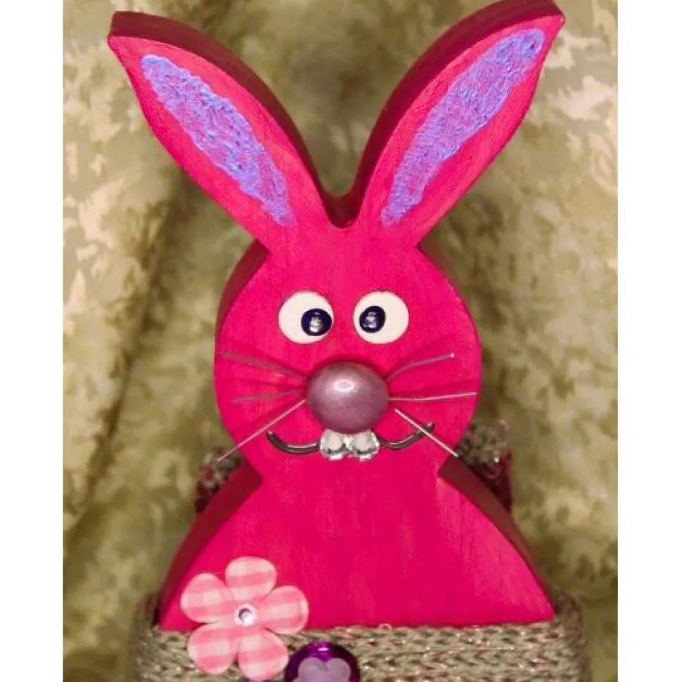 Zauberhafter Osterhase, aus Holz gefertigt und mit Acrylfarben in Pink bemalt.